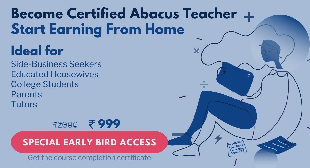 You already know, that the education sector is an evergreen industry and Abacus is the talk of the town. Learn and teach Abacus to others, make some money, and have a better life. Start this course to become a Certified Abacus Teacher.